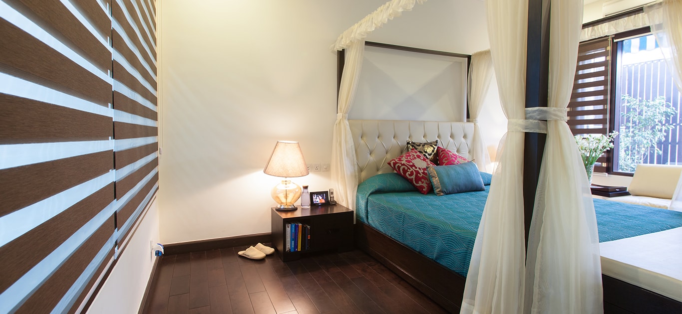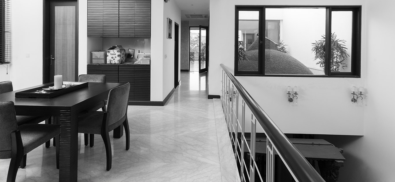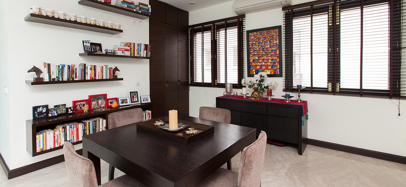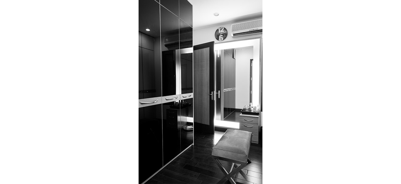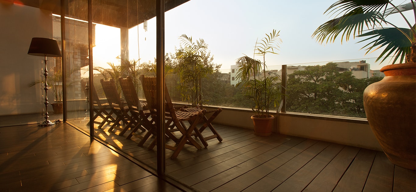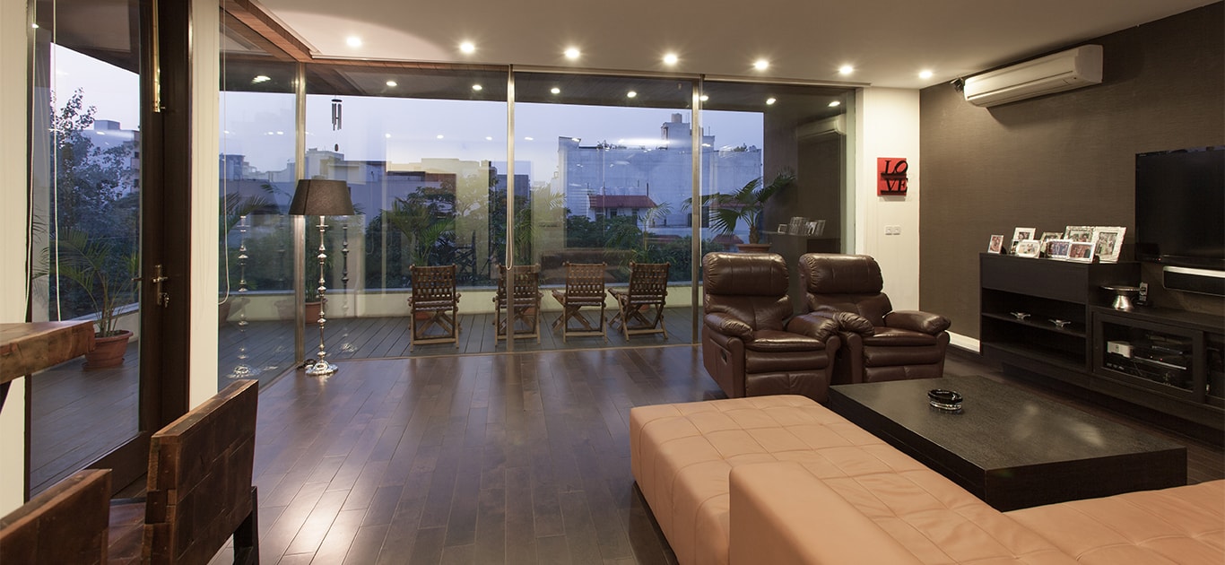The apartment spread over 4000 sq. ft., belongs to a young couple and was kept very contemporary in sensibility. They had a fantastic view as they were located above most homes in the vicinity and had a garden view apartment. This aspect was highlighted with a huge wrap-around deck in their lounge area and floor-to-ceiling windows. The Vibe is very young and chic.