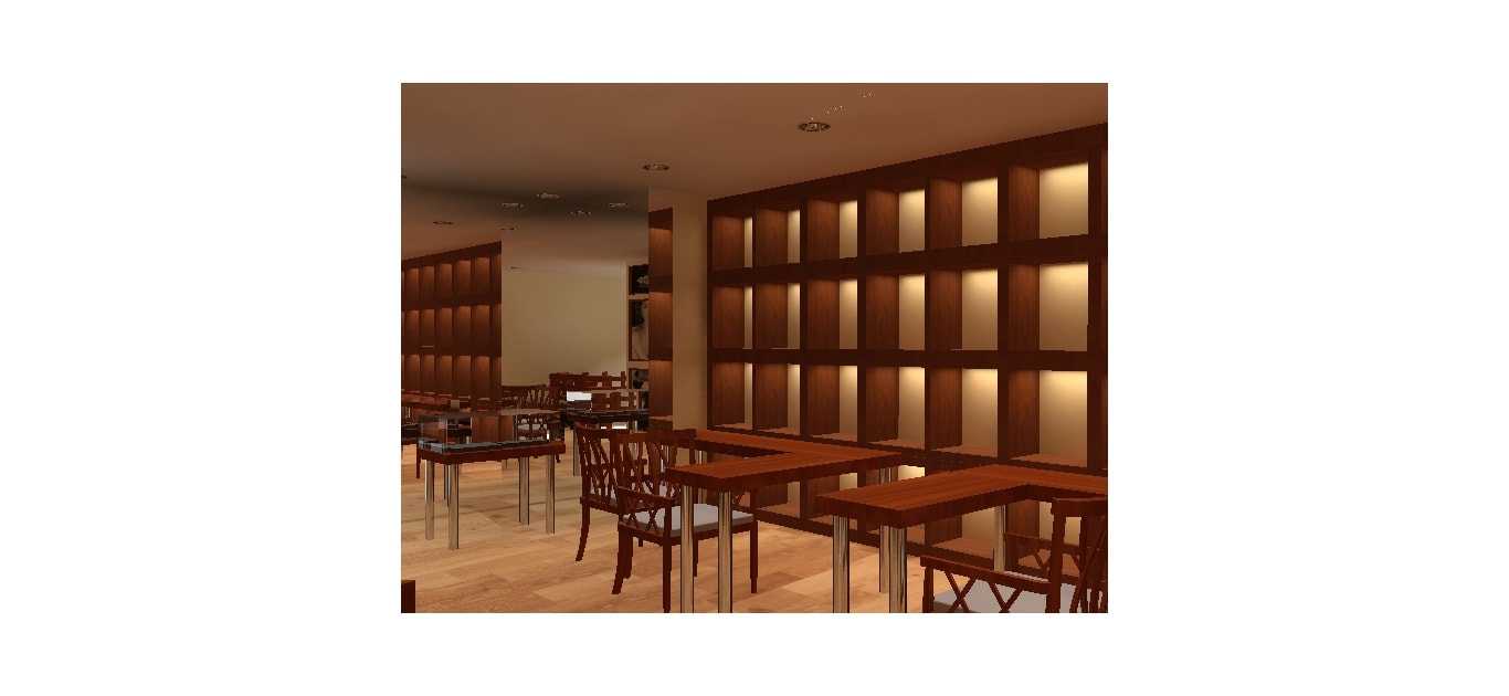 We modernized this quaint little jewellery store located in the heart of Brigade road. A mezzanine level was added with silver and gold jewellery viewing demarcated clearly. Lot of wooden elements and gold screens where used to highlight the grandiosity.