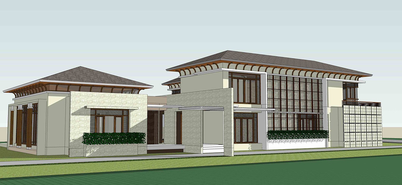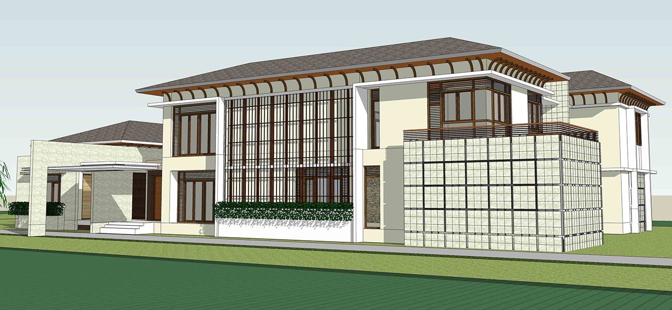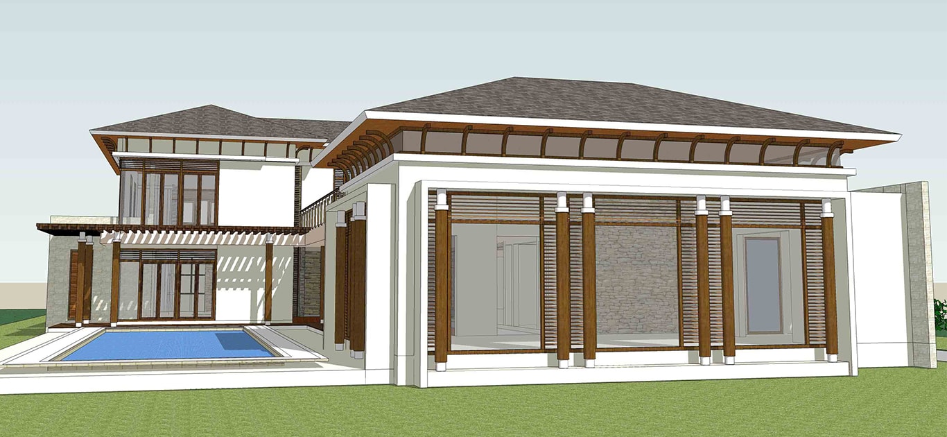Spread over a land area of 25,000 sq. ft., this 12,000 sq. ft., home is designed around a Modern Balinese Concept. With 20 feet high-pitched wooden roofs in the main area and use of Modern Tropical design elements, it is an ode to tropical architecture. The landscape is key to the project with water bodies, a swimming pool, fountains, used of rockery and sculpture that make it extremely organic.
