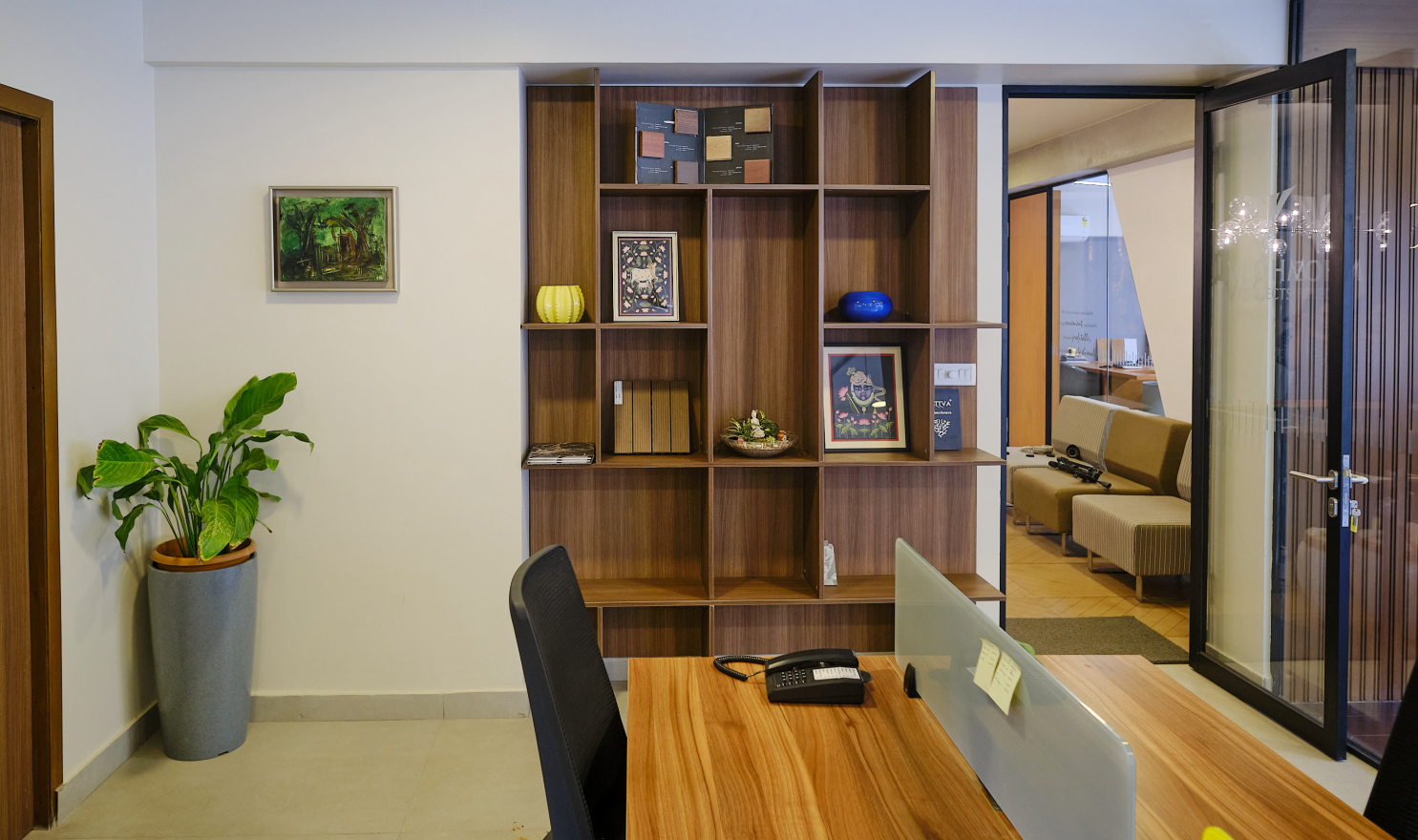 The space has been divided into 4 parts- the Reception & waiting area, The showroom, director’s cabin, and conference/ meeting room. With great support and expertise in the designing field, the team has gathered the elements to conquer the meaning of formulating a space.